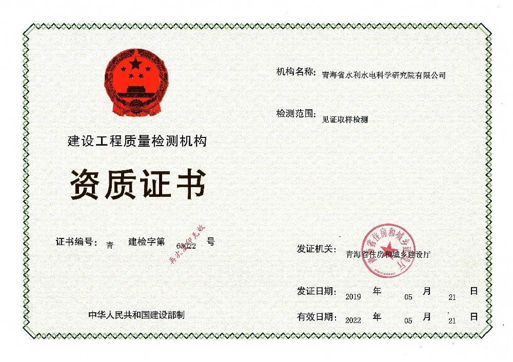 • 建設工程質量檢測機構資質證書