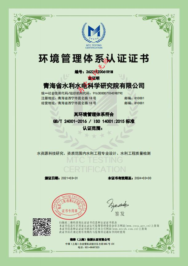 • 環境管理體系認證證書